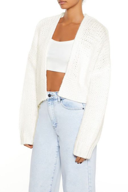 Details A chunky knit cardigan sweater featuring an open front, dropped shoulders, and long sleeves. Content + Care – 100% acrylic – Hand wash cold Size + Fit – Model is 5’9″ and wearing a Small