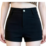 Add an edgy, Y2K-inspired touch to your warm-weather wardrobe with these black high-waisted slim shorts. Crafted from soft stretch denim, they feature a high-rise fit and ultra-short slim silhouette. Perfect for summer outings or streetwear looks, pair them with a cropped tank top and platform sneakers for a complete Y2K outfit, or with a band tee and combat boots for a punk-inspired vibe. These shorts are a versatile staple that combines comfort, edge, and timeless style.