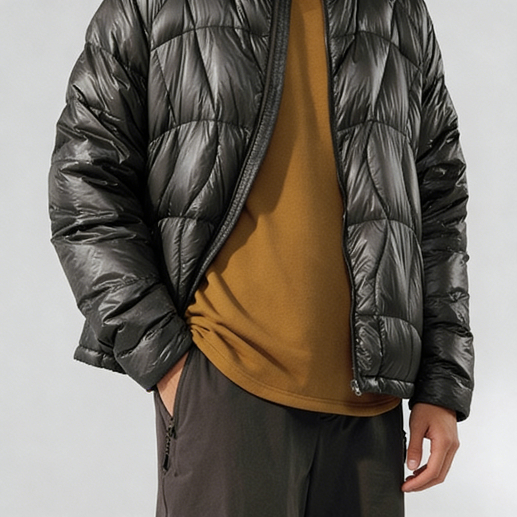Technics: Wave-quilted construction, stand collar, front zipper closure, side pockets