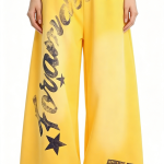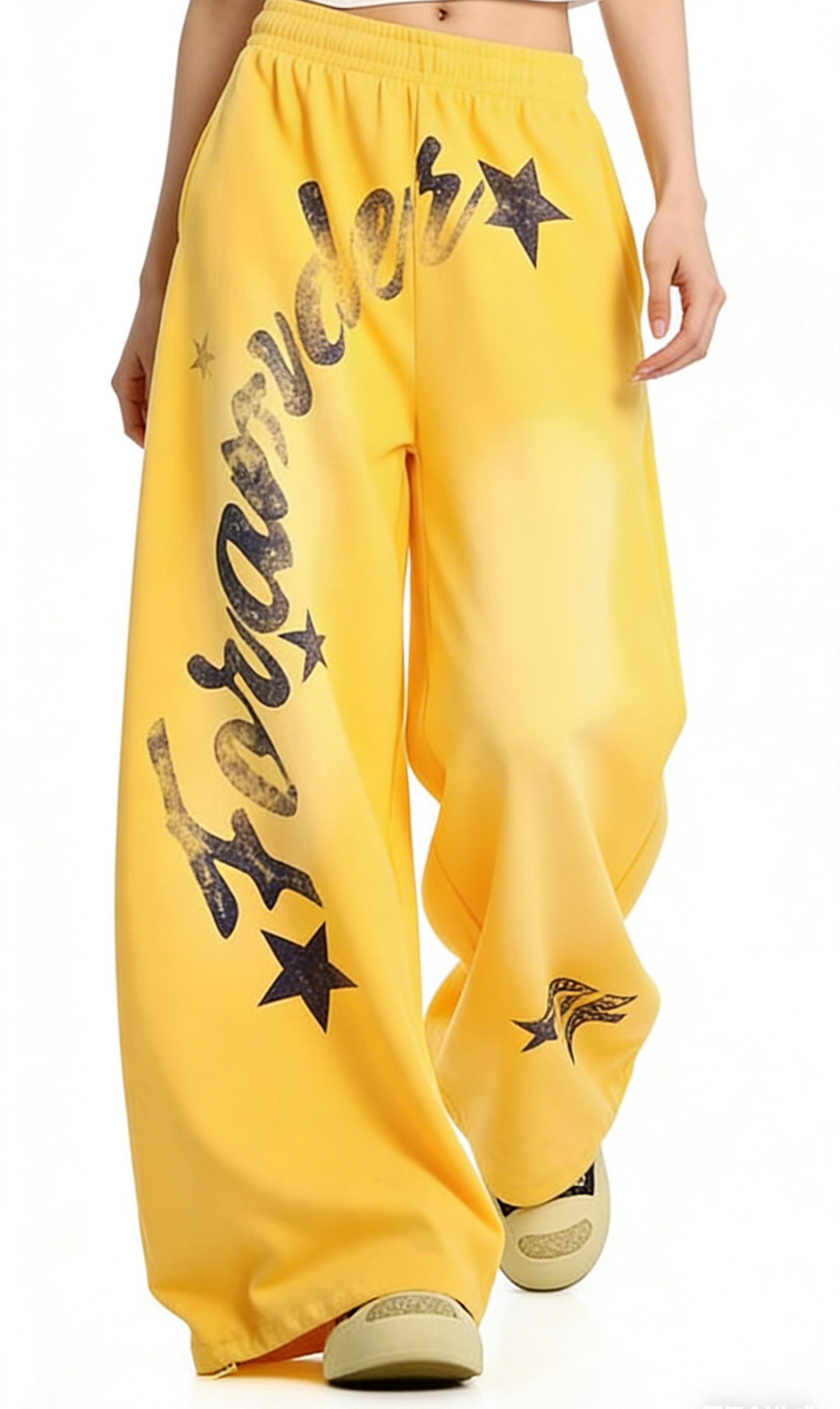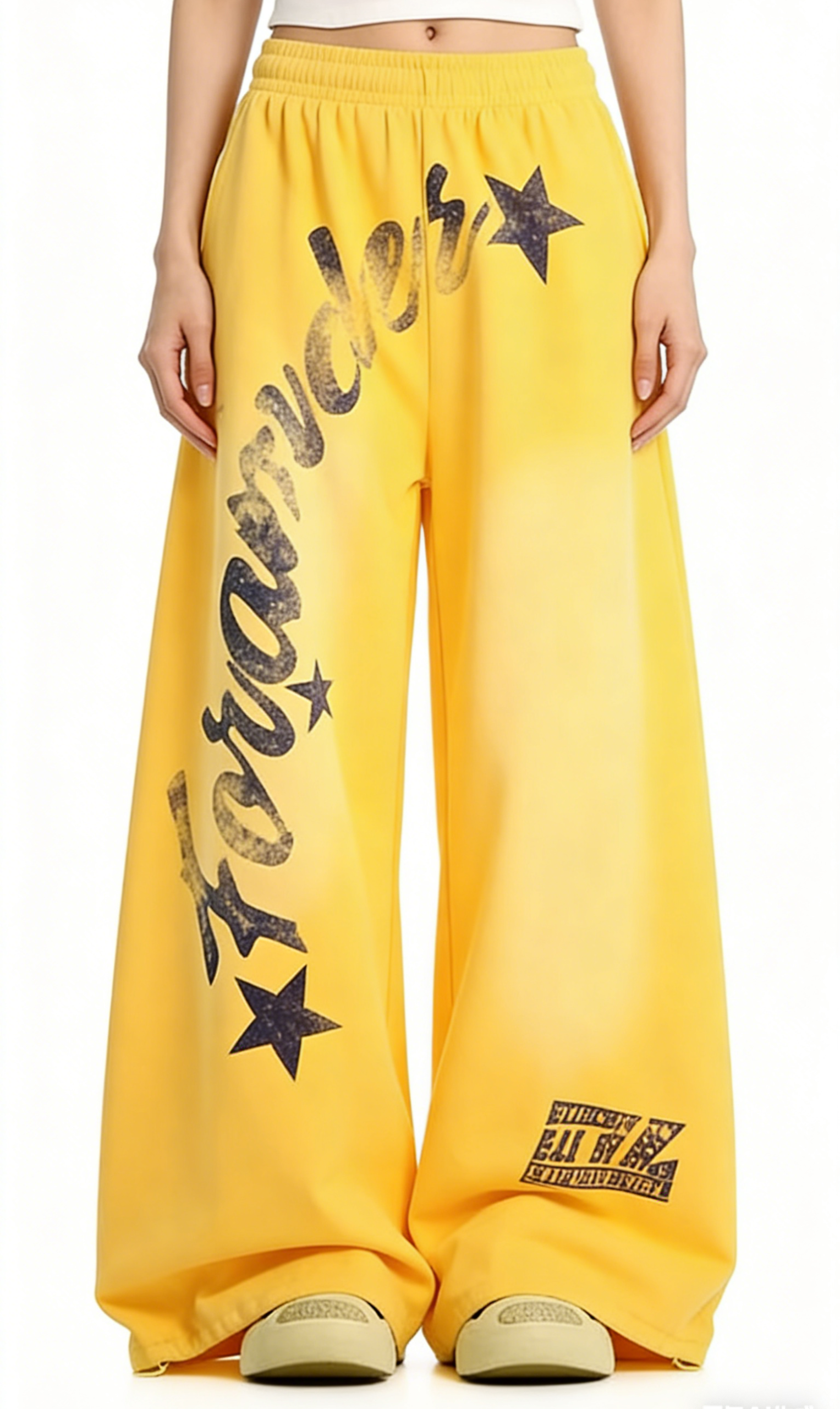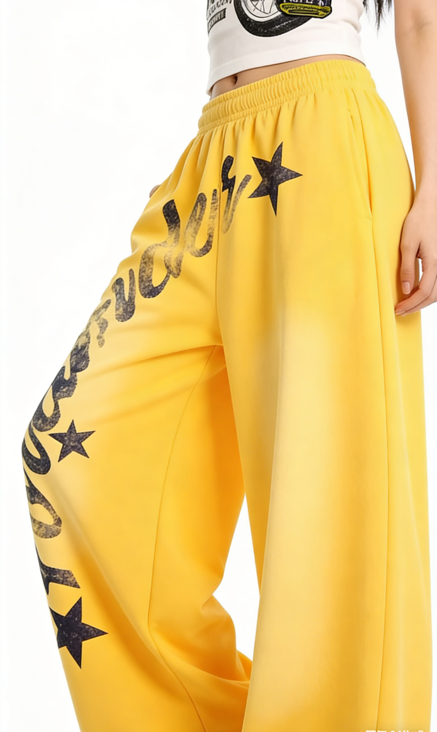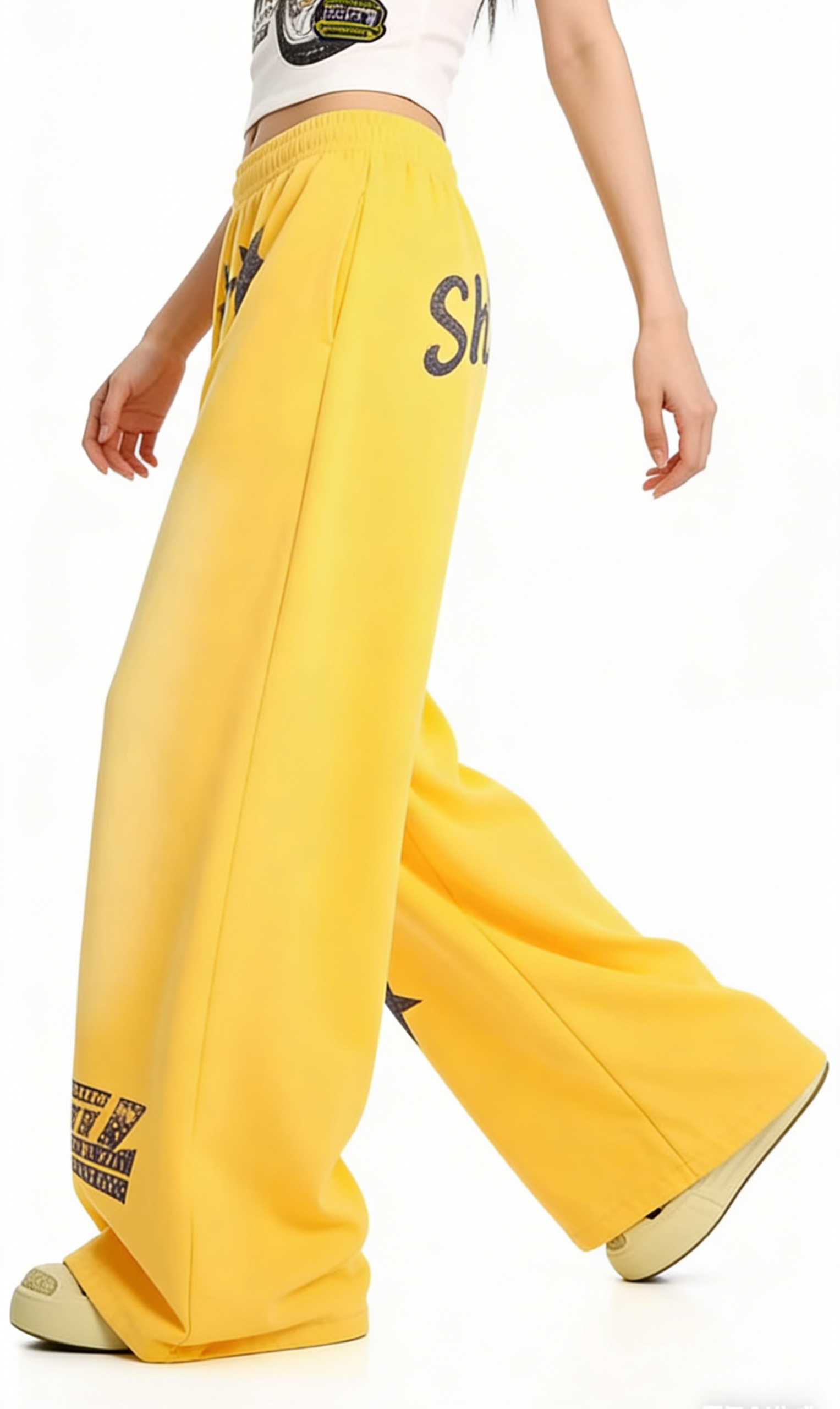 Add a bold, retro touch to your casual wardrobe with these bright yellow graphic print wide-leg sweatpants. Crafted from soft fleece-lined fabric, they feature an oversized wide-leg silhouette, vintage graphic prints, and adjustable ankle hems. Perfect for loungewear or streetwear looks, pair them with a cropped baby tee and platform sneakers for a complete Y2K outfit, or with an oversized hoodie and slippers for a cozy at-home vibe. These pants are a versatile staple that combines comfort, nostalgia, and bold, timeless style.