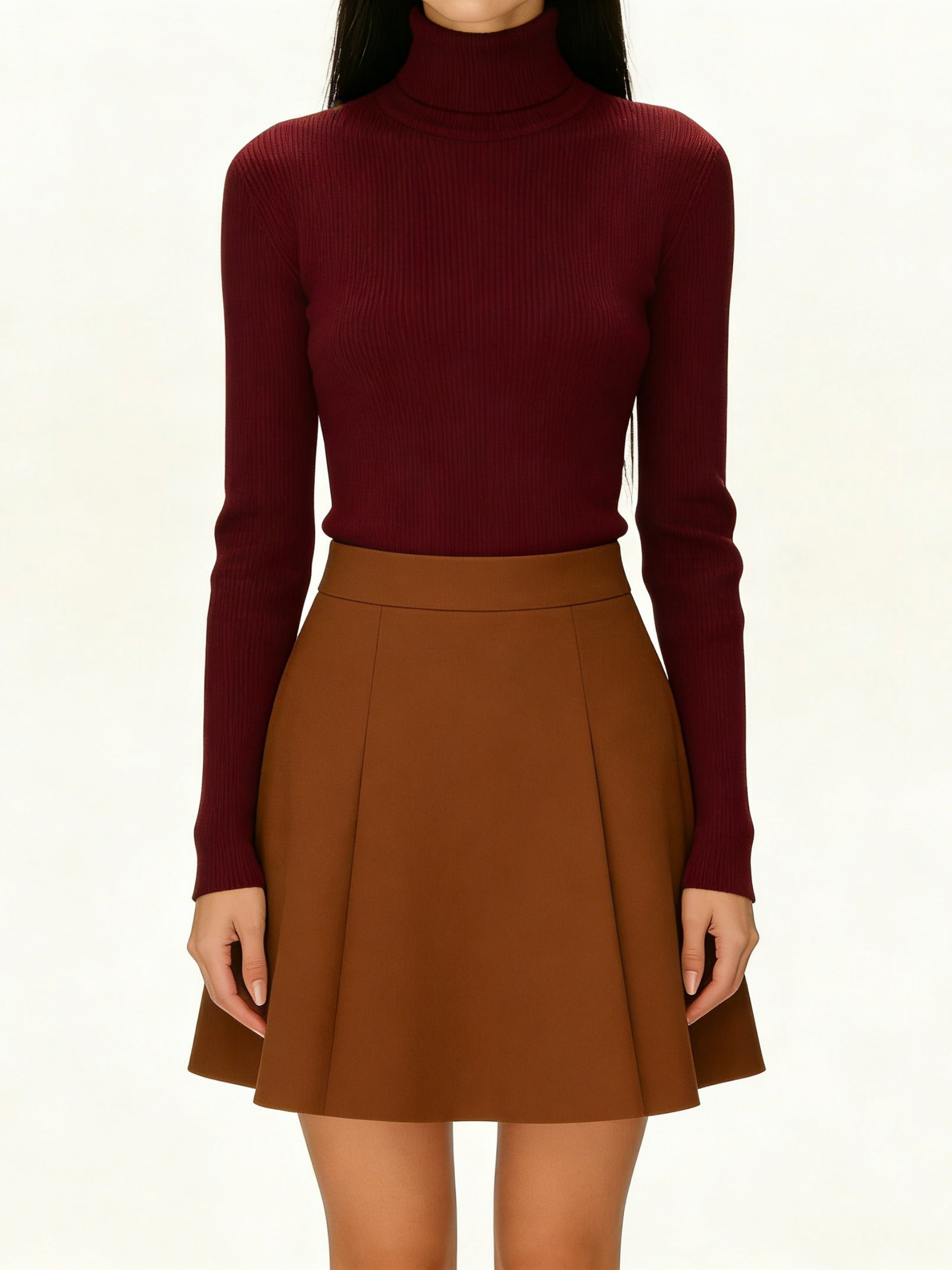 Burgundy Turtleneck Slim-Fit Rib-Knit Top