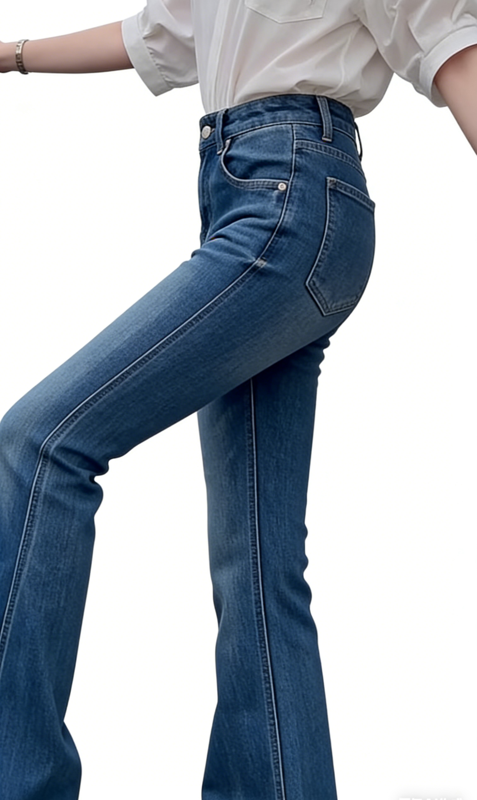 - High-Waisted Design: Clean waistband with button closure and zipper fly for a secure, flattering fit