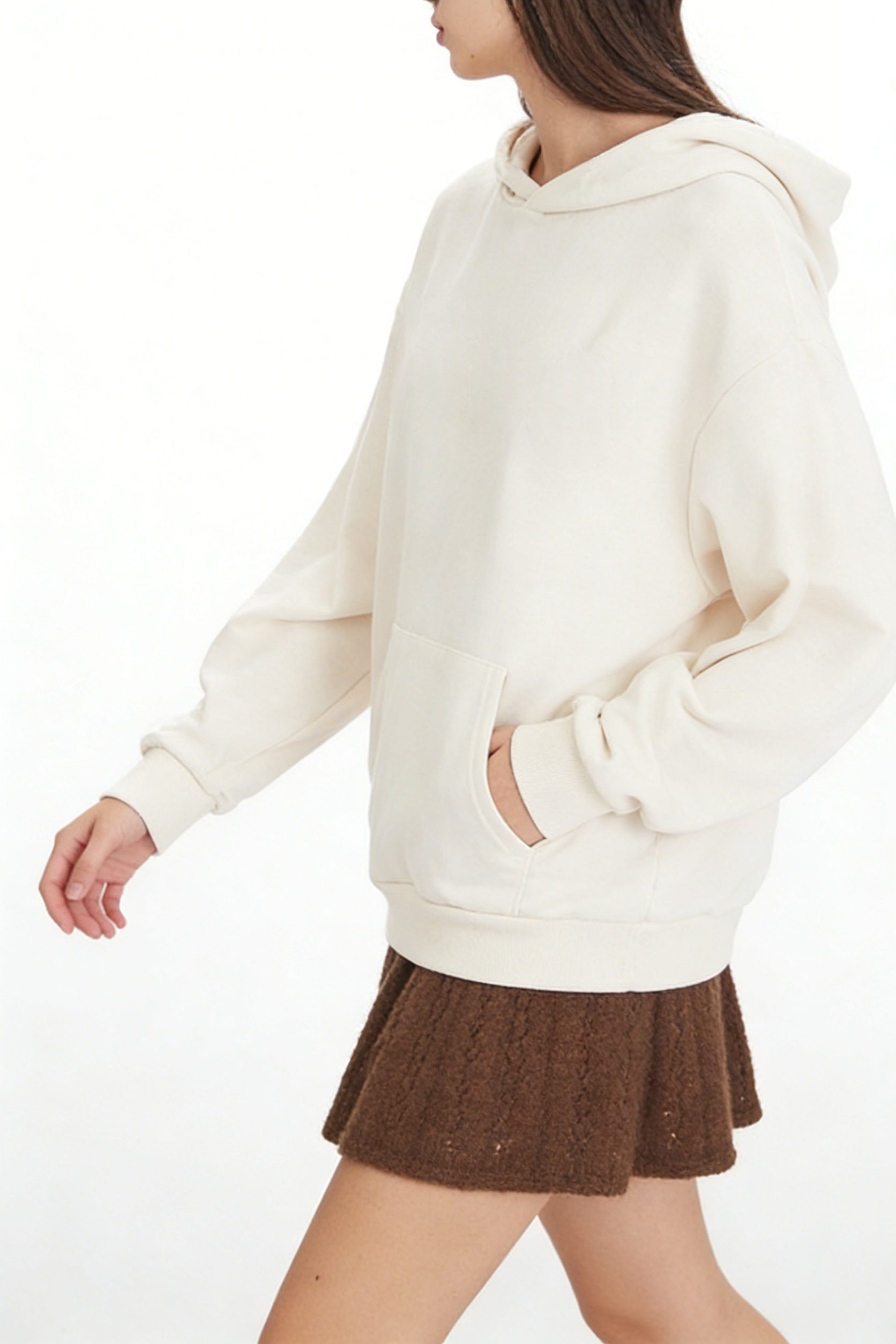 Main Fabric: French Terry Blend (Cotton + Polyester + Spandex) – soft, cozy, with moderate stretch and good breathability