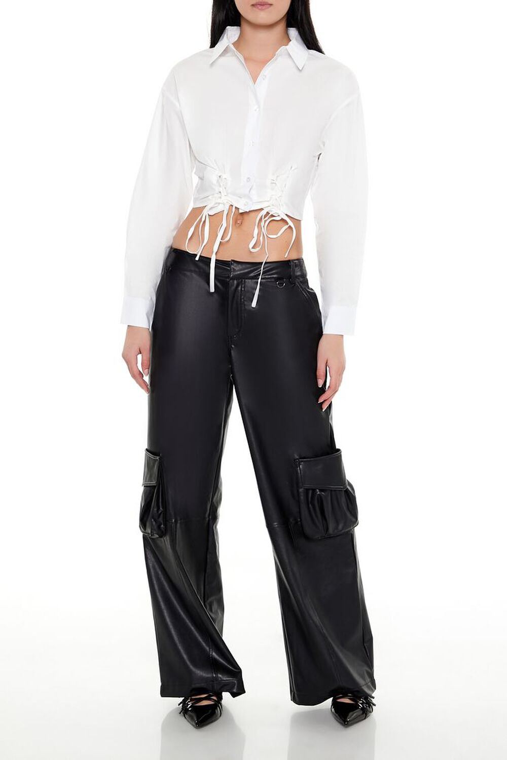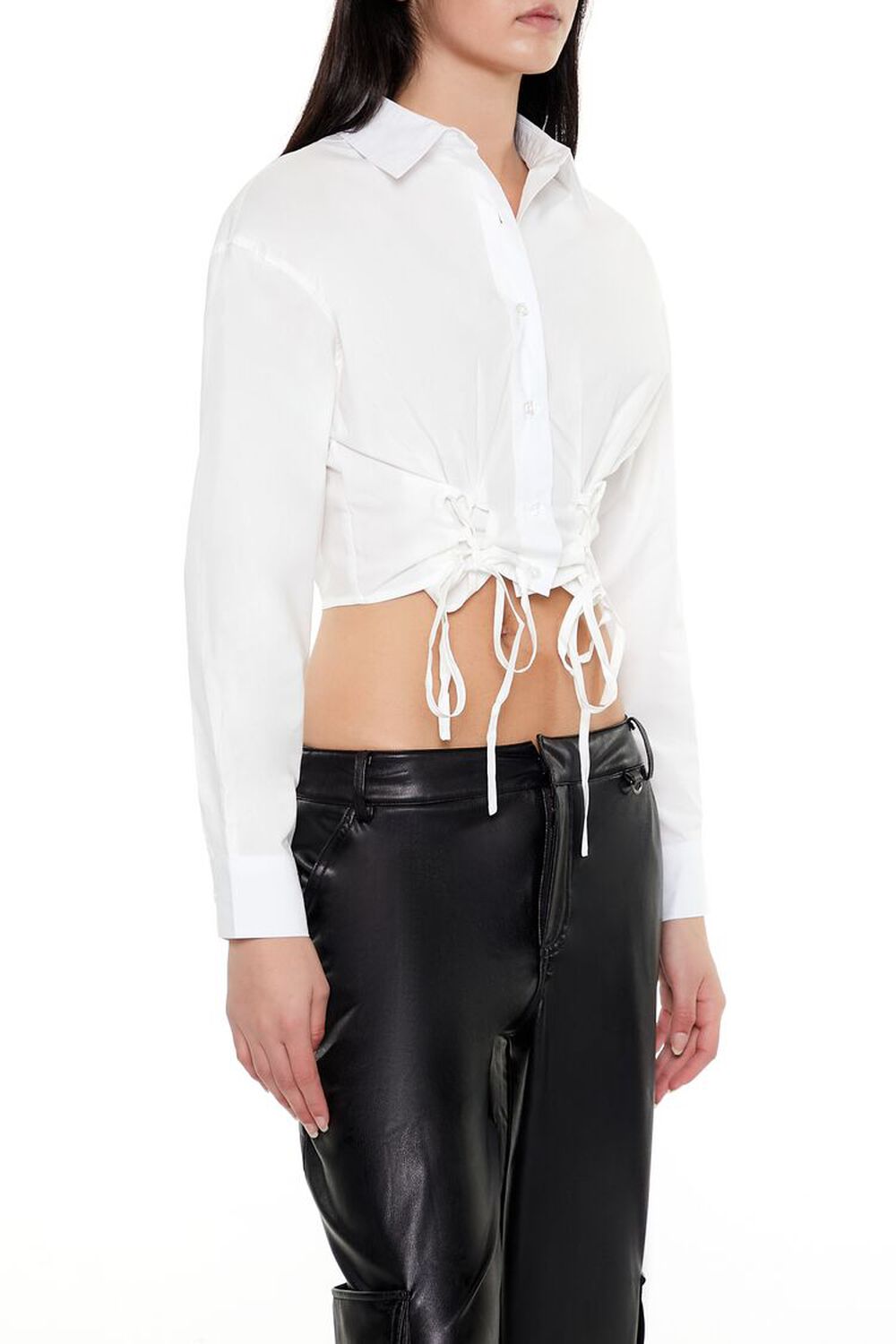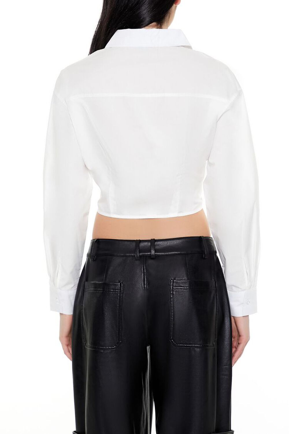 Details A satin shirt featuring button-front closures, long sleeves, a basic collar, and cropped hem. Content + Care – 96% polyester, 4% spandex – Hand wash cold Size + Fit – Model is 5’9″ and wearing a Small