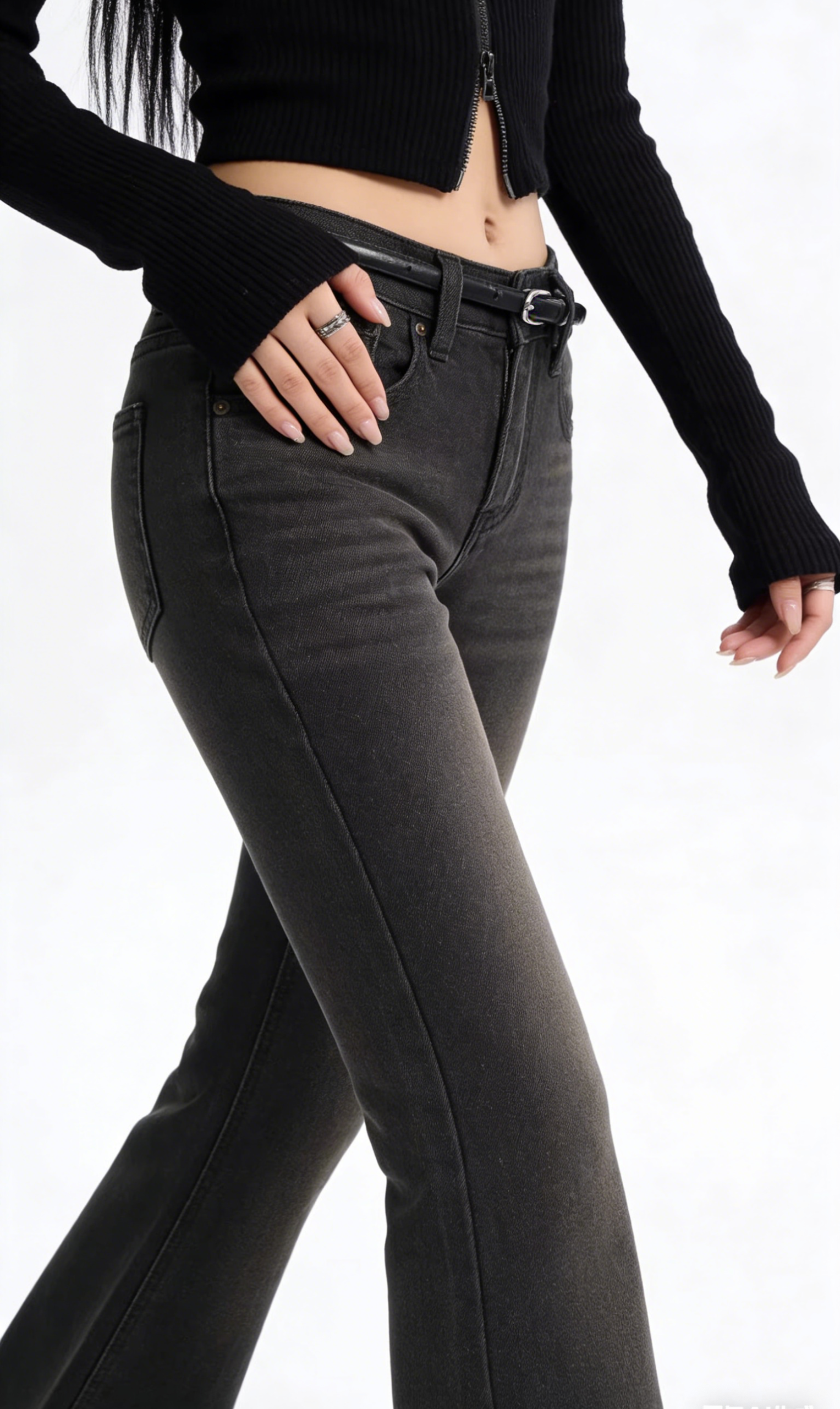- High-Waisted Flare Silhouette: High rise waist and wide flared leg embody Y2K and 70s retro style