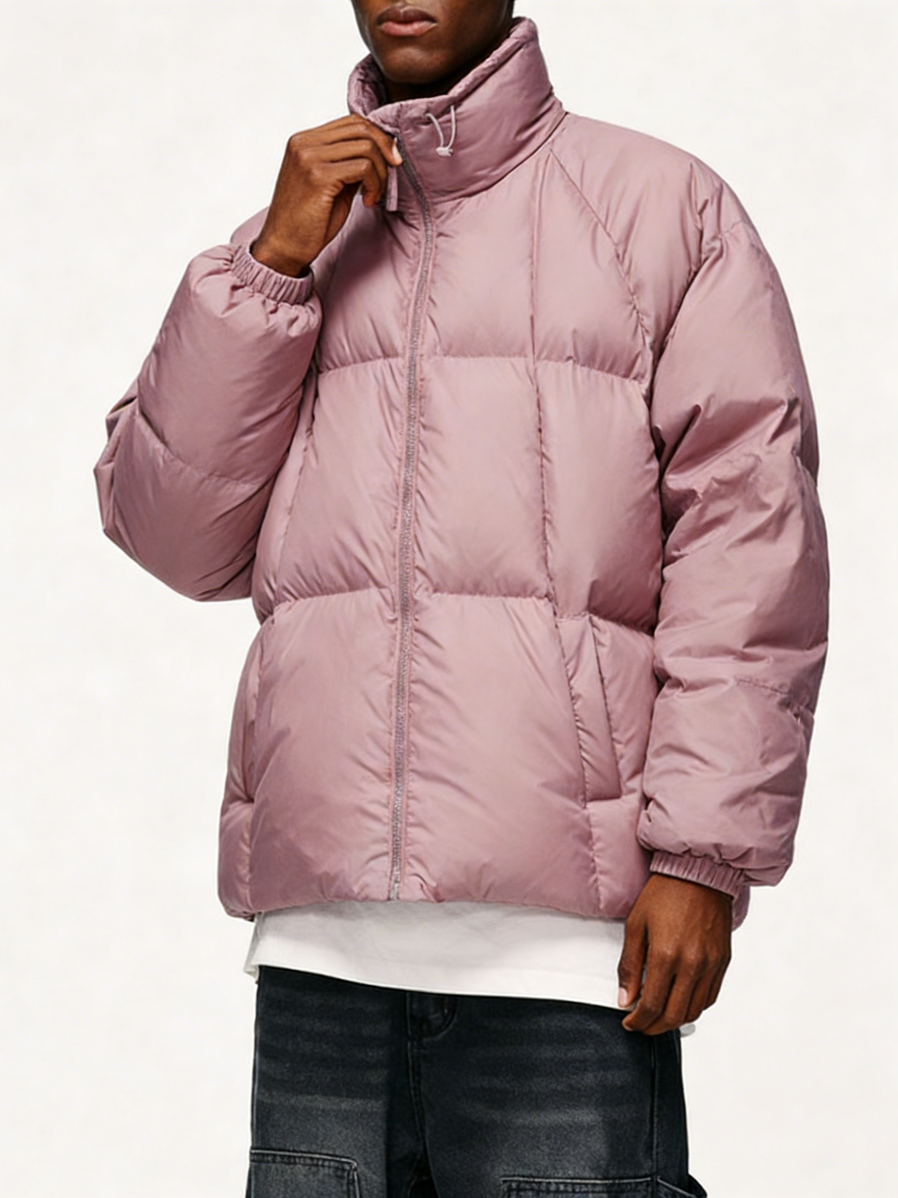 Collar: Stand collar with drawstrings