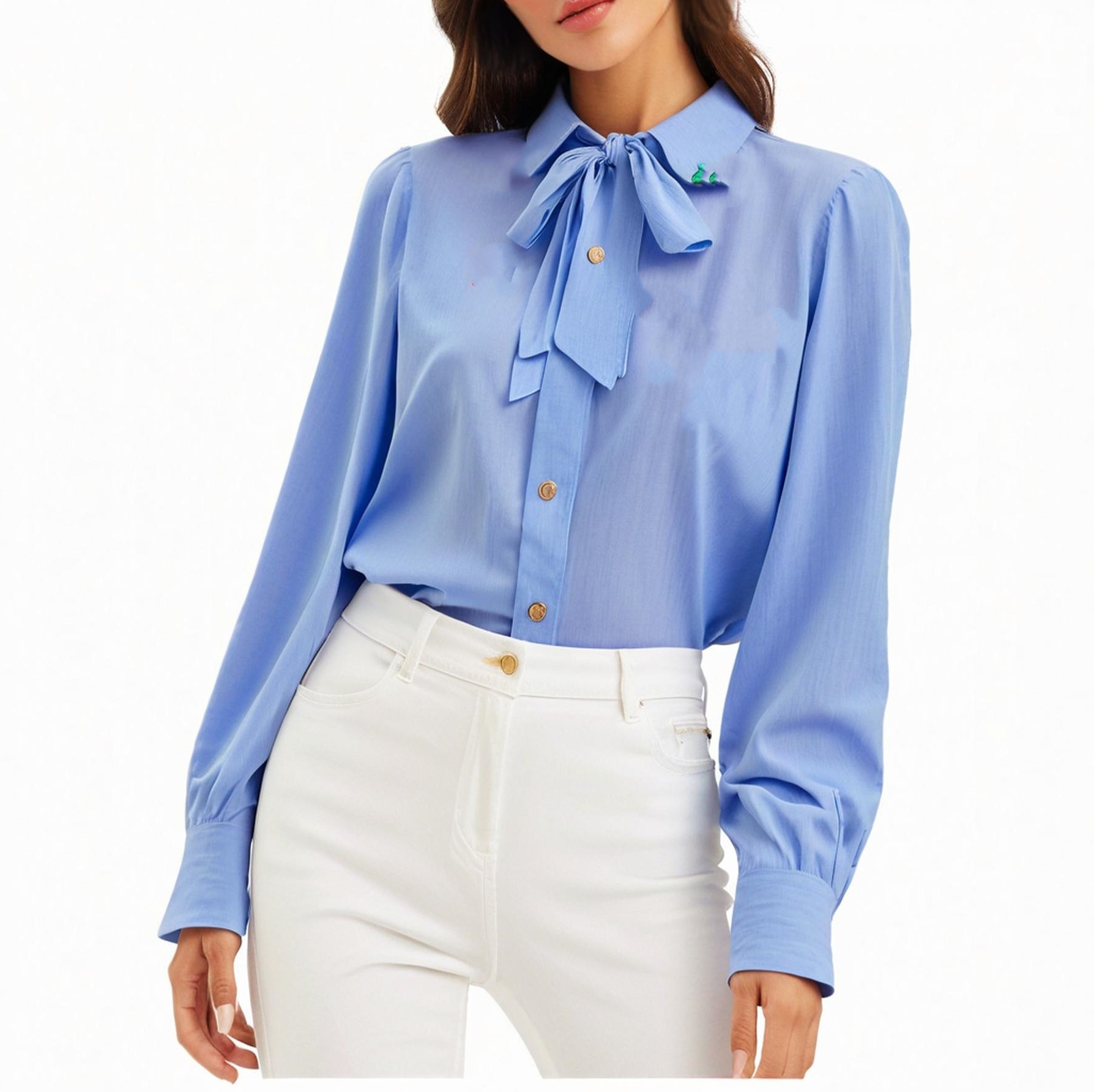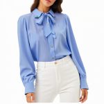 Elegant tie-neck silk smock blouse