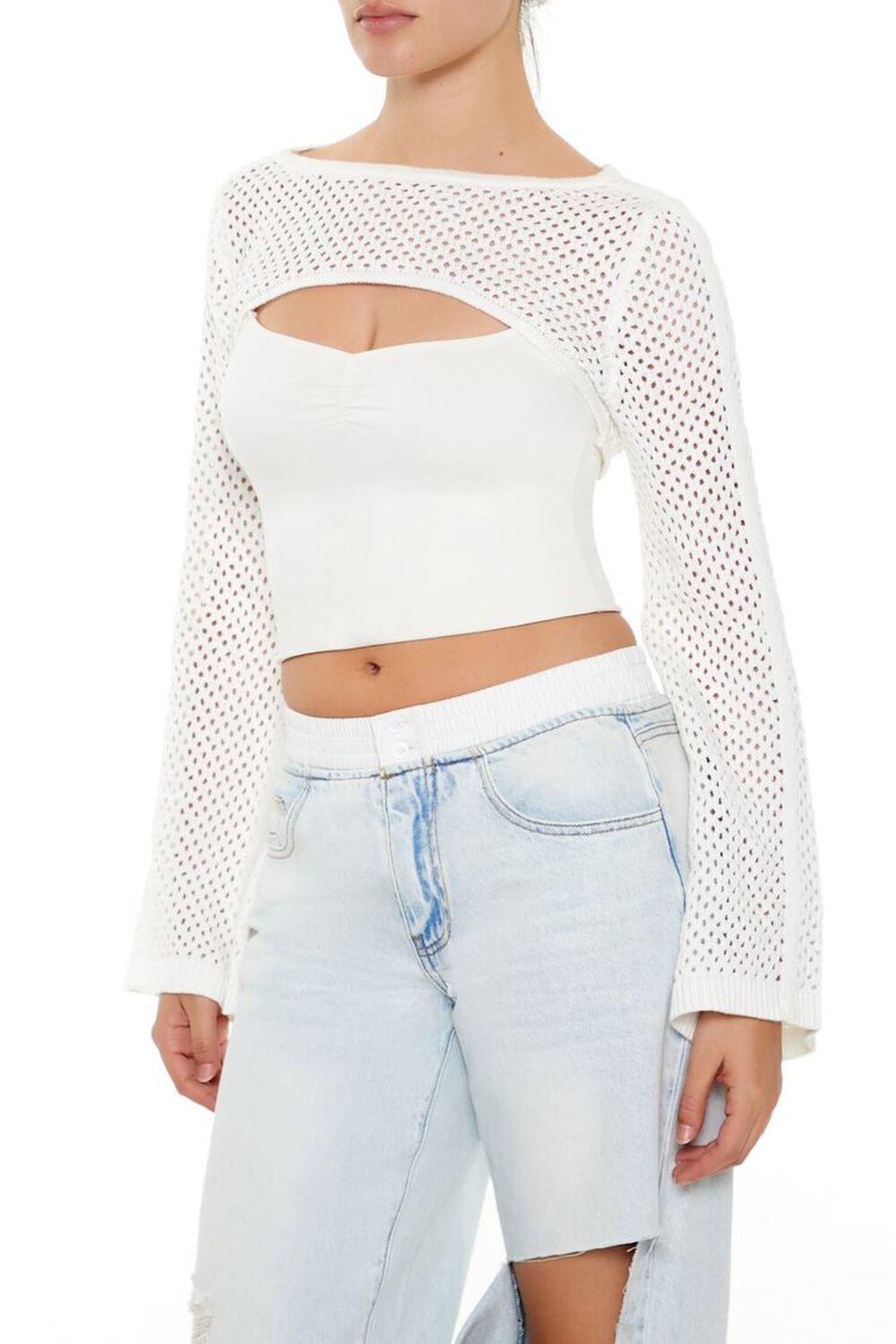 Details A chunky knit shrug sweater featuring a high neckline, dropped shoulders, and long sleeves. Content + Care – 100% acrylic – Hand wash cold Size + Fit – Model is 5’6″ and wearing a Small