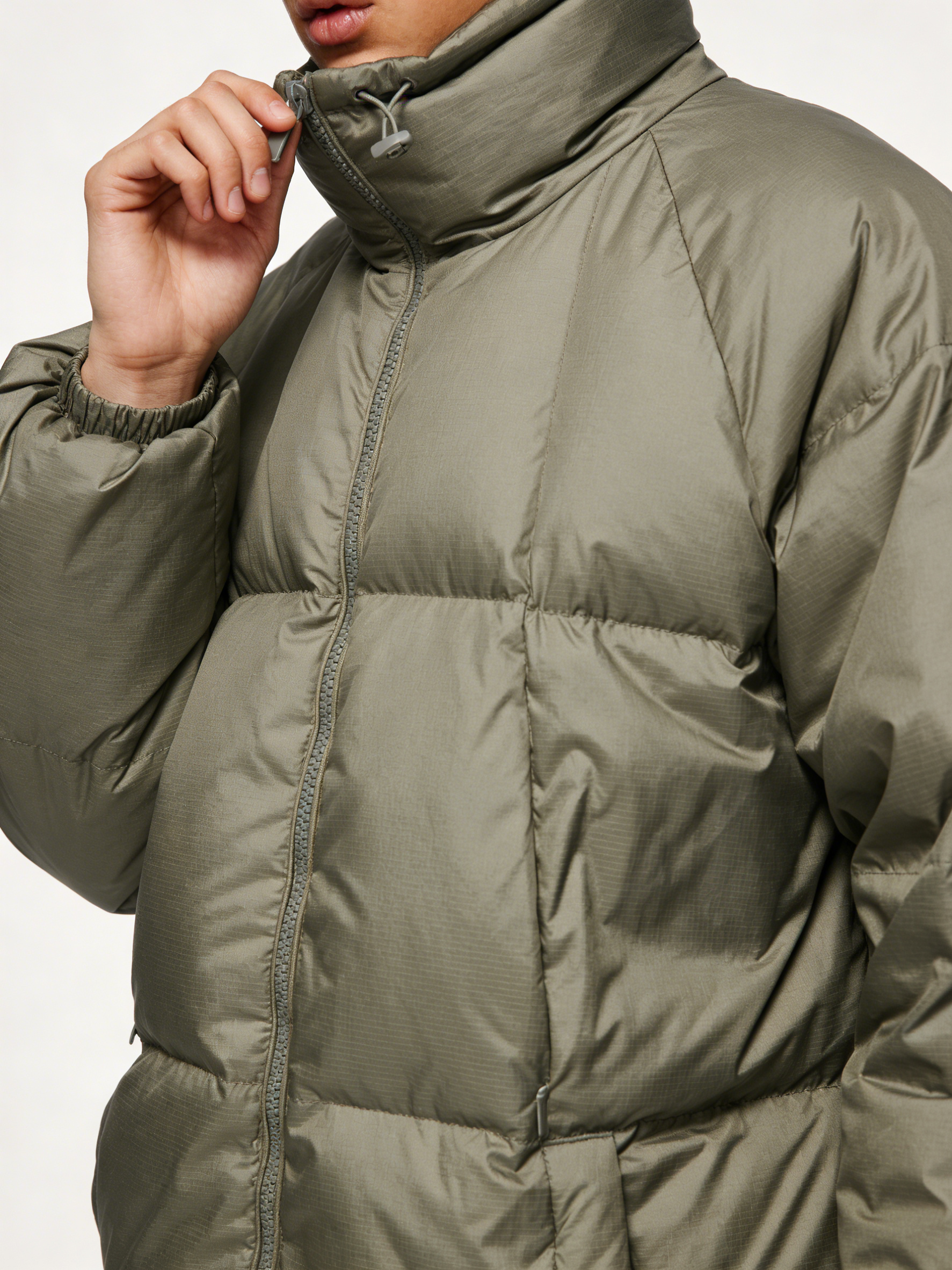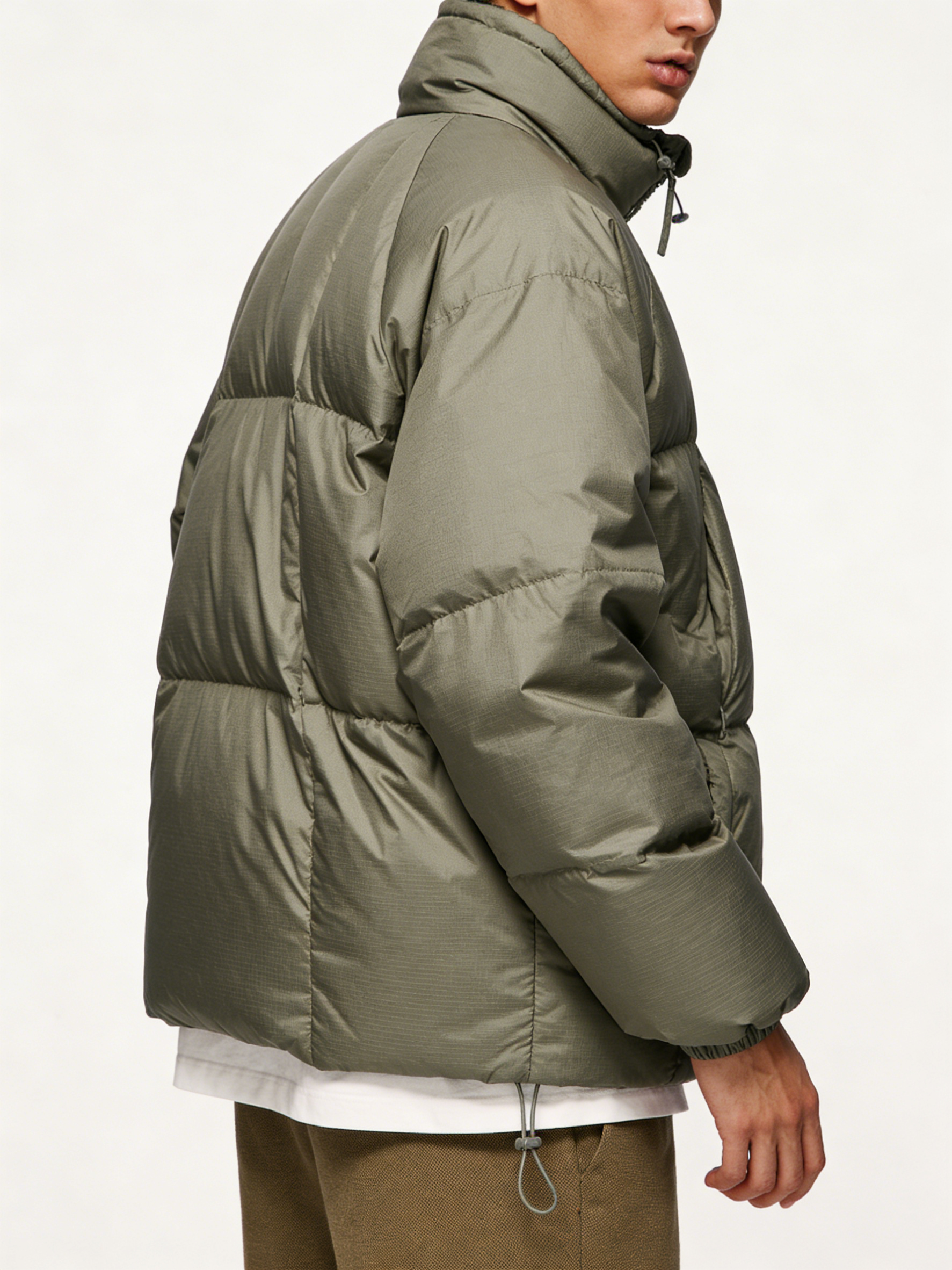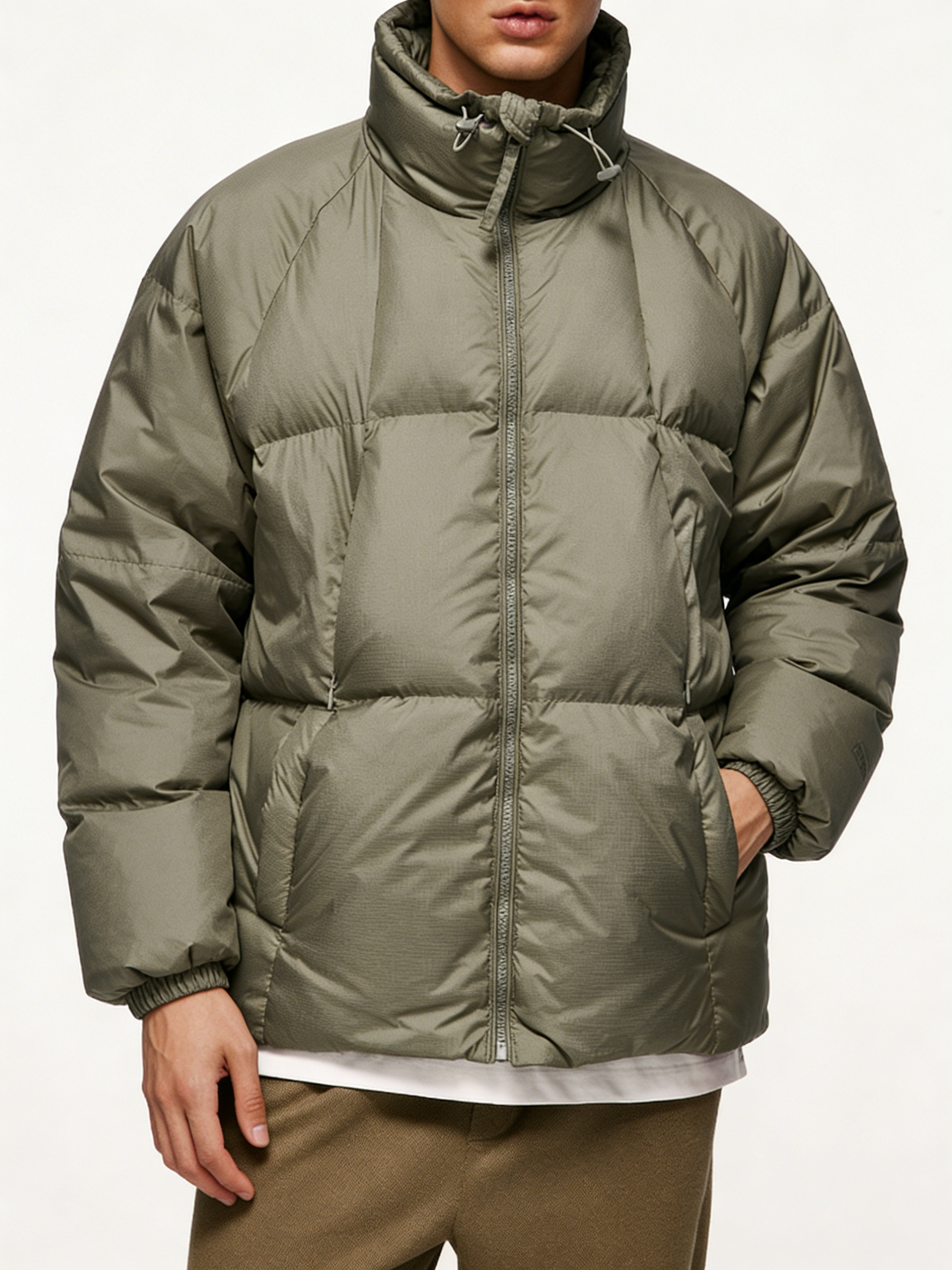 Olive Green High-Neck Puffer Jacket