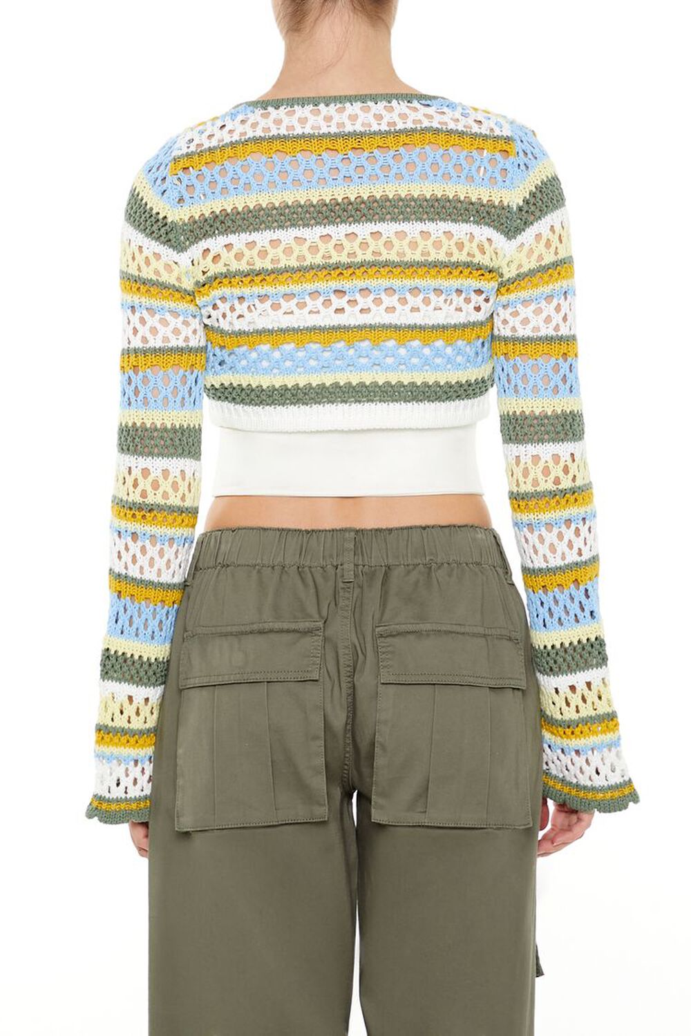 Details A fuzzy knit sweater featuring an open-knit construction, bow front embellishments, dropped long sleeves, a crew neck, and cropped hem. Content + Care – 70% polyester, 30% acrylic – Hand wash cold Size + Fit – Model is 5’6″ and wearing a Small