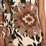 - Bold Tribal Floral Print: Rich earth-tone pattern with large central florals and geometric borders evokes a global vacation vibe