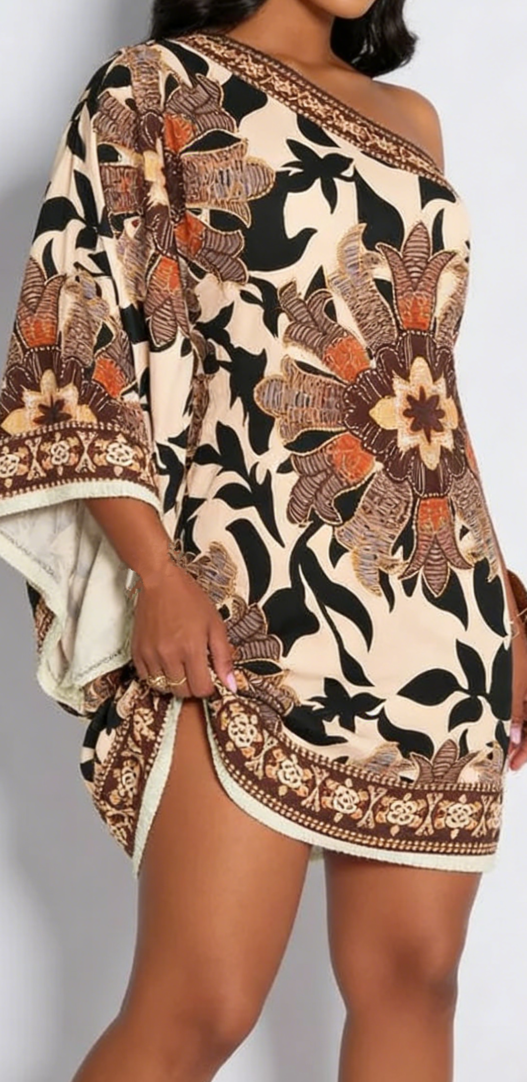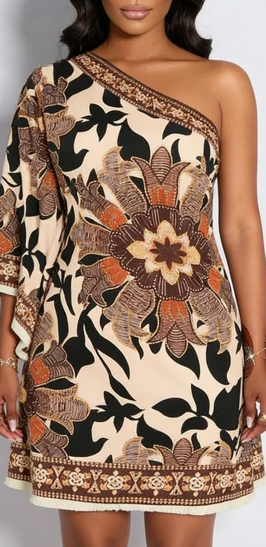 Product Type: One-Shoulder Printed Mini Dress (Boho Vacation Style)