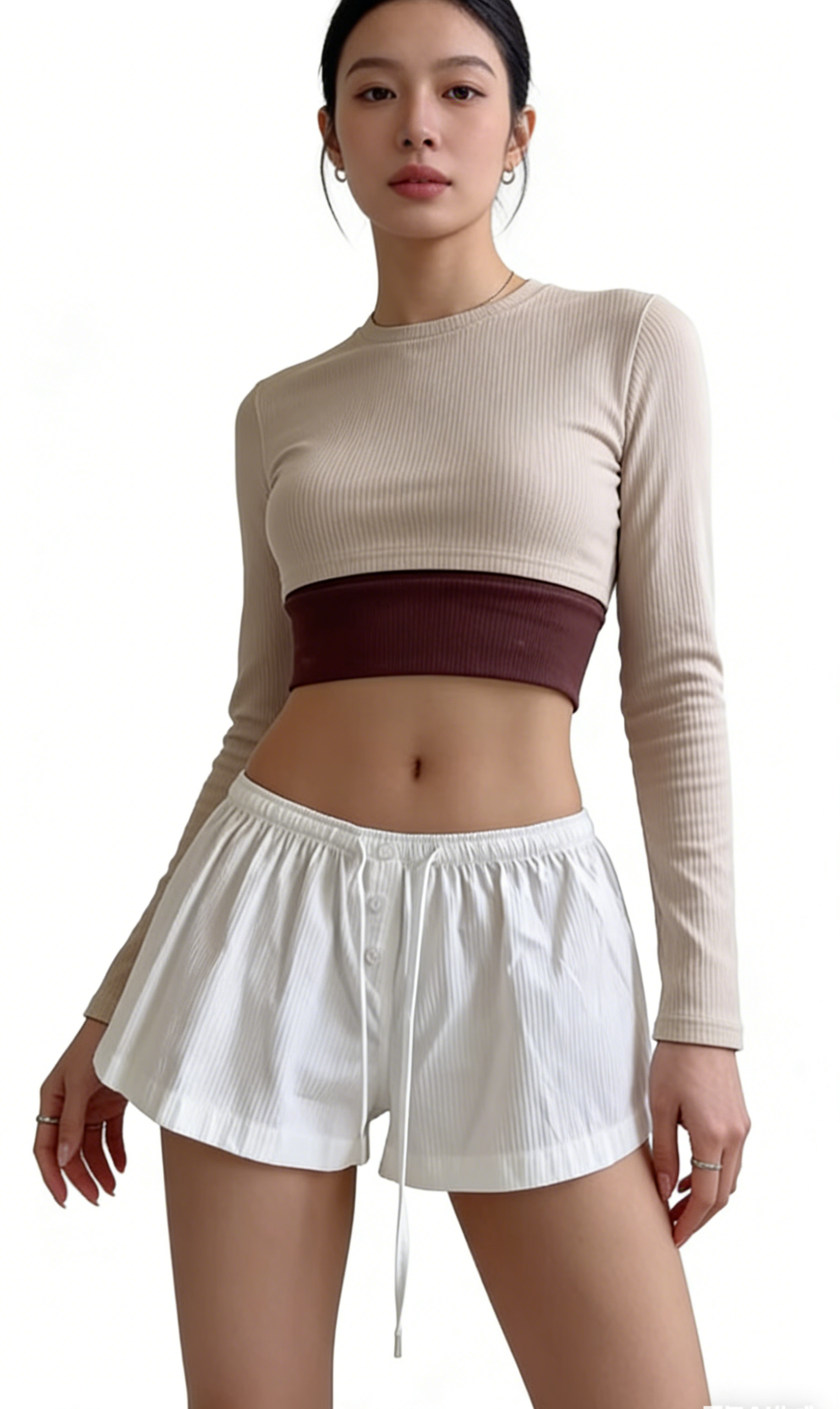 Add a fresh, feminine touch to your warm-weather wardrobe with these white high-waisted drawstring shorts. Crafted from lightweight woven fabric with a subtle vertical stripe texture, they feature a high-rise fit, ruffled flowy hem, and adjustable drawstring waist. Perfect for loungewear or casual outings, pair them with a cropped long-sleeve top and sneakers for a relaxed streetwear look, or with a tank top and sandals for a beach-ready vibe. These shorts are a versatile staple that combines comfort, charm, and timeless style.