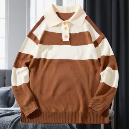 Details A knit rugby shirt featuring an allover striped pattern, long sleeves, partial button placket, and a basic collar. Content + Care – 100% cotton – Hand wash cold Size + Fit – Model is 5’6″ and wearing a Small